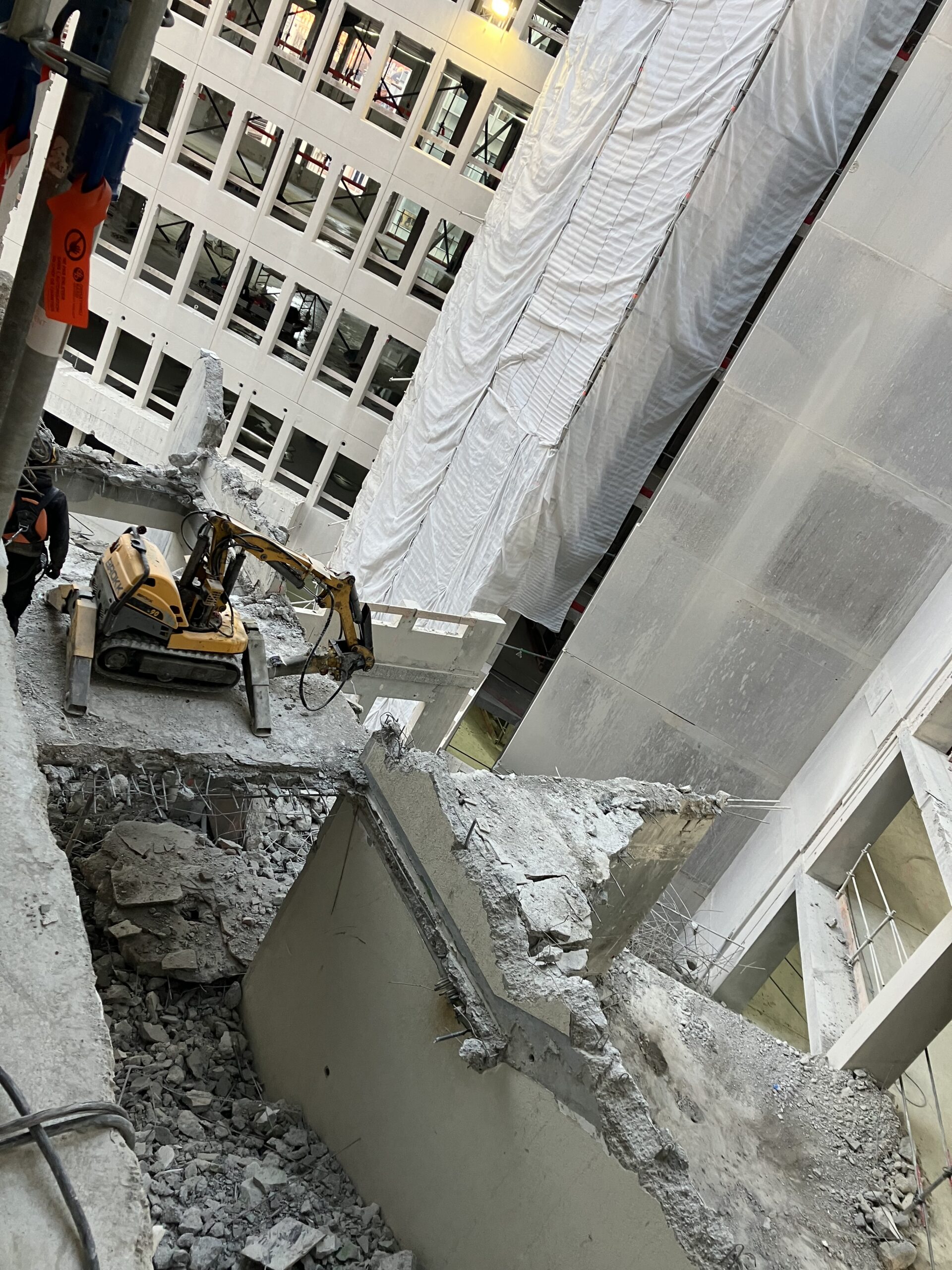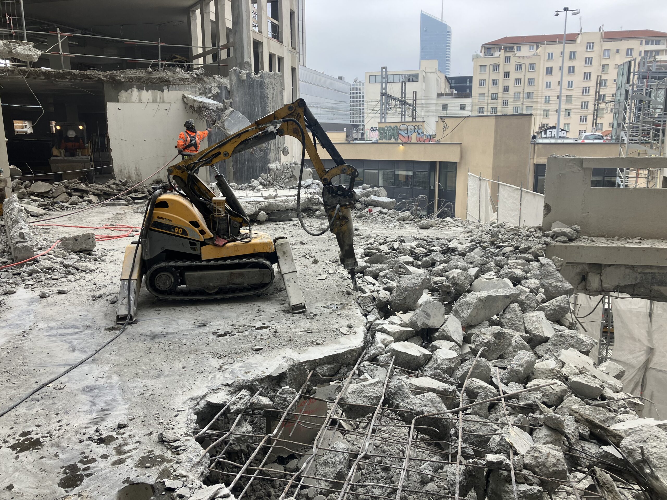 Specialistes de la déconstruction technique par écrêtage, nous intervenons avec des engins électriques télécommandés pour garantir précision, sécurité et maîtrise totale des opérations. Nos robots de démolition permettent un travail à distance, réduisant fortement l'exposition aux risques et aux vibrations. Chaque intervention est réalisée selon un phasage rigoureux, avec sécurisation périphérique et contrôle permanent de la stabilité des structures.